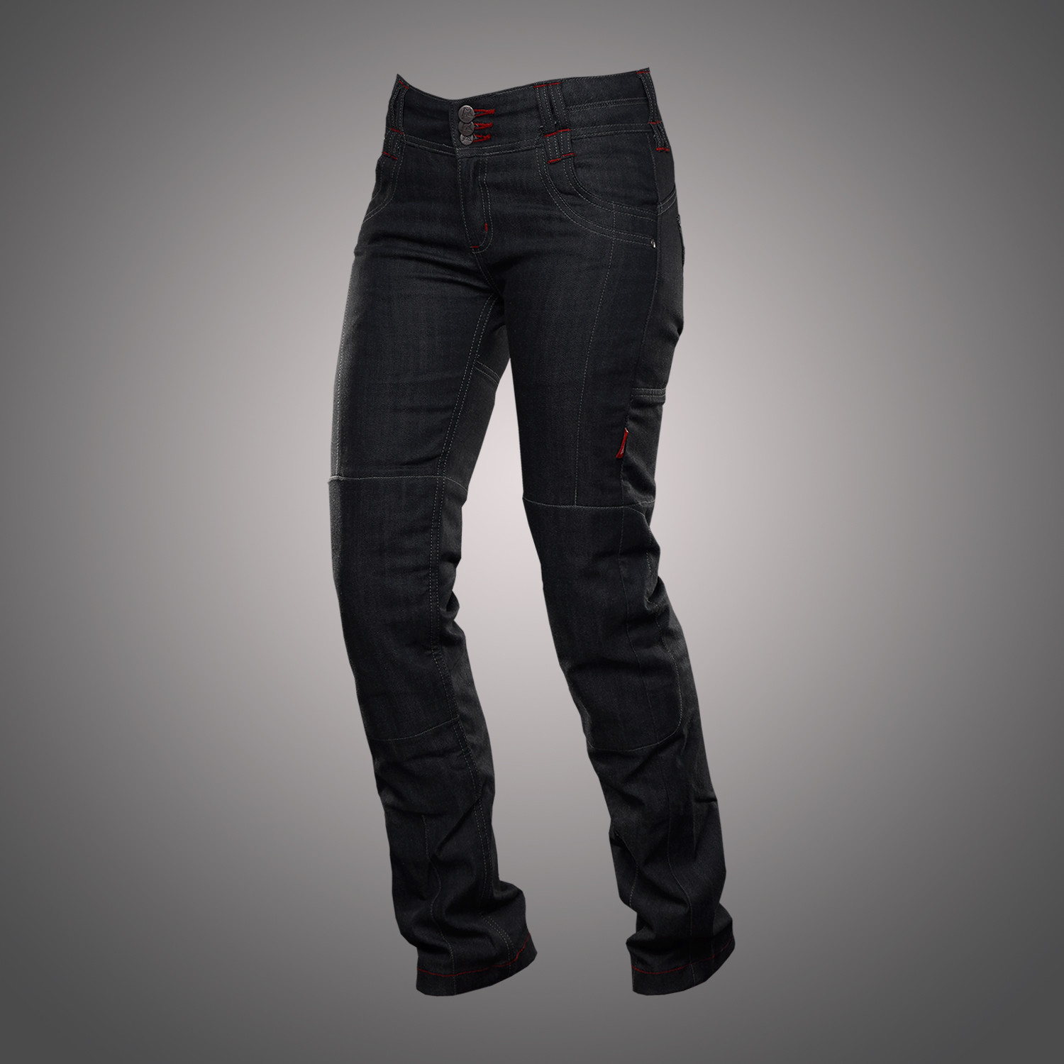 Dámske moto jeansy Cool Lady Black sú vyrobené z čierneho 14 uncového denimu, ktorý je ale vďaka pridanému elastanu dostatočne pružný a pohodlný.