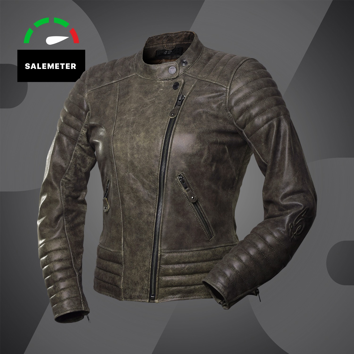 Táto skvelá = Cool bunda je vyrobená z prvotriednej byvolej kože v retro úprave, na predlaktí a vnútornej časti zaujme dámske, decentné logo 4SR a celkové štýlové prešitie motobundy.