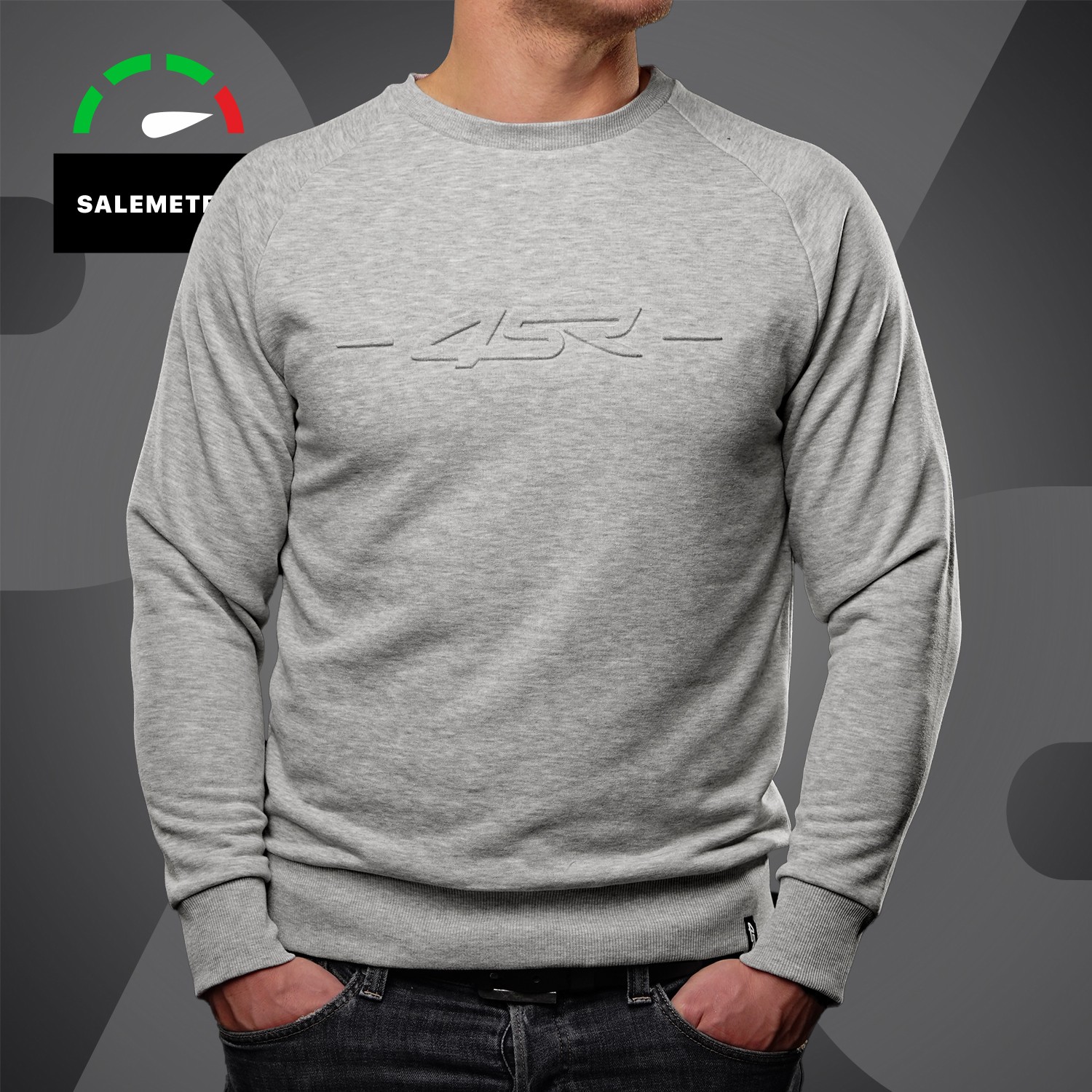 Šedá mikina bez kapucne Logo EMB Grey s 3D logom 4SR je vyrobená z príjemného materiálu French Terry.