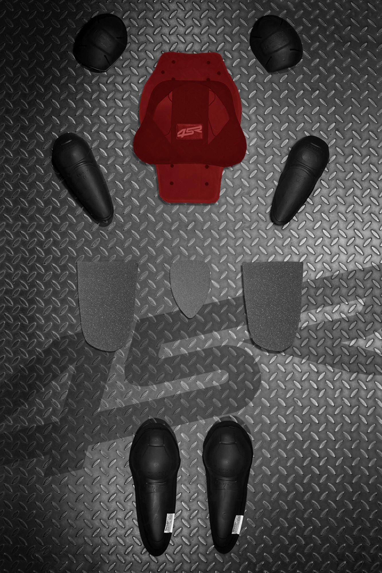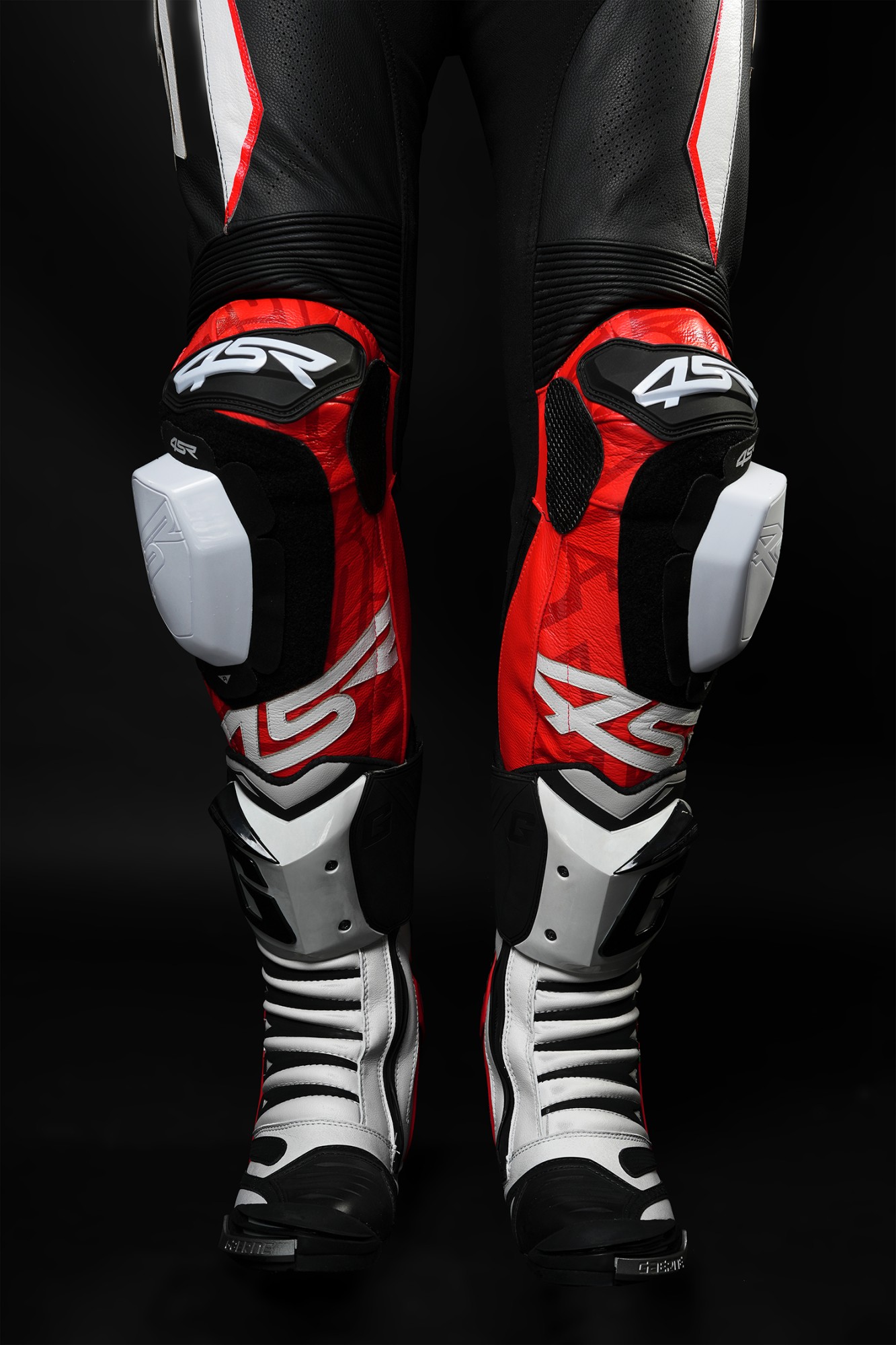 - Kombinézy 4SR majú na lakťoch, ramenách, bokoch a v sedacej časti kožu v dvoch vrstvách