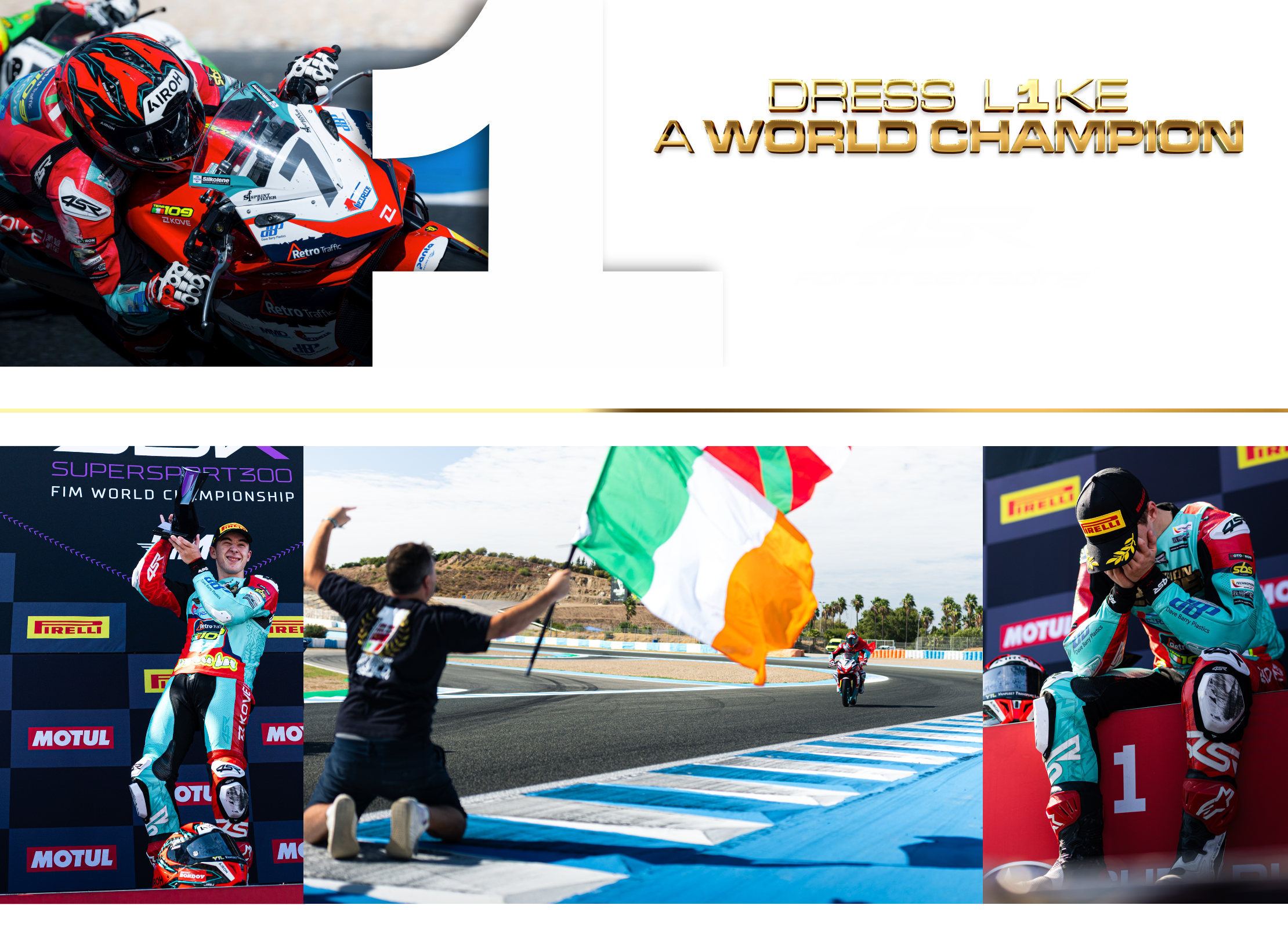 Každé preteky sa začínajú správnou voľbou. Tím, jazdec, motorka, pneumatiky, kombinéza, prilba... K víťazstvu treba ísť šťastiu naproti. Ale bez dokonalej prípravy a najlepších podmienok samotné šťastie nestačí. Nie je to kalkul, je to odhodlanie a cesta. Majstri sveta sa nerodia z excelových tabuliek športových manažérov. Ich recept na úspech zostáva prísne stráženým tajomstvom. Ingrediencie, ktoré recept na úspech obsahuje, sú talent, usilovnosť, drina a 100 % vybavenie. Všetko musí byť v správnom pomere. Pretrepať, nemiešať. Vo 4SR po rokoch strávených na pretekárskych okruhoch a nespočetných zlomených ihlách pri zdokonaľovaní každého, čo i len najmenšieho detailu našich kombinéz, dobre vieme, že snaha o dokonalosť je základ. Všetko, čo robíme, robíme s maximálnym nasadením. Dosiahnuť vrchol však nikdy nie je samozrejmosť.